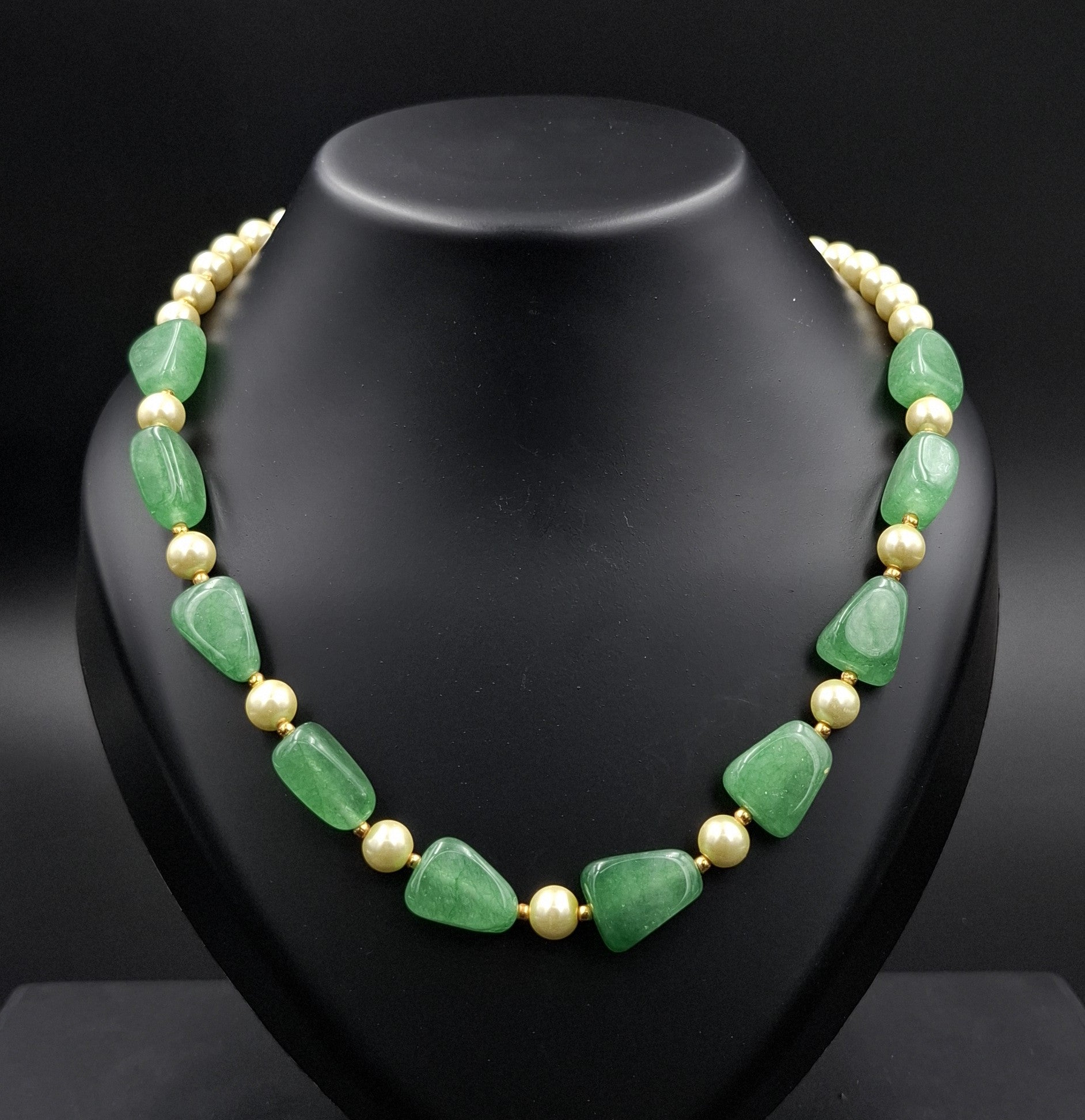 Gold Beads & Light Green Bead Necklace – Grace in Every Strand